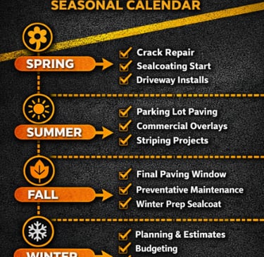 Many homeowners believe summer is the only paving season. In reality, the optimal asphalt window is:
