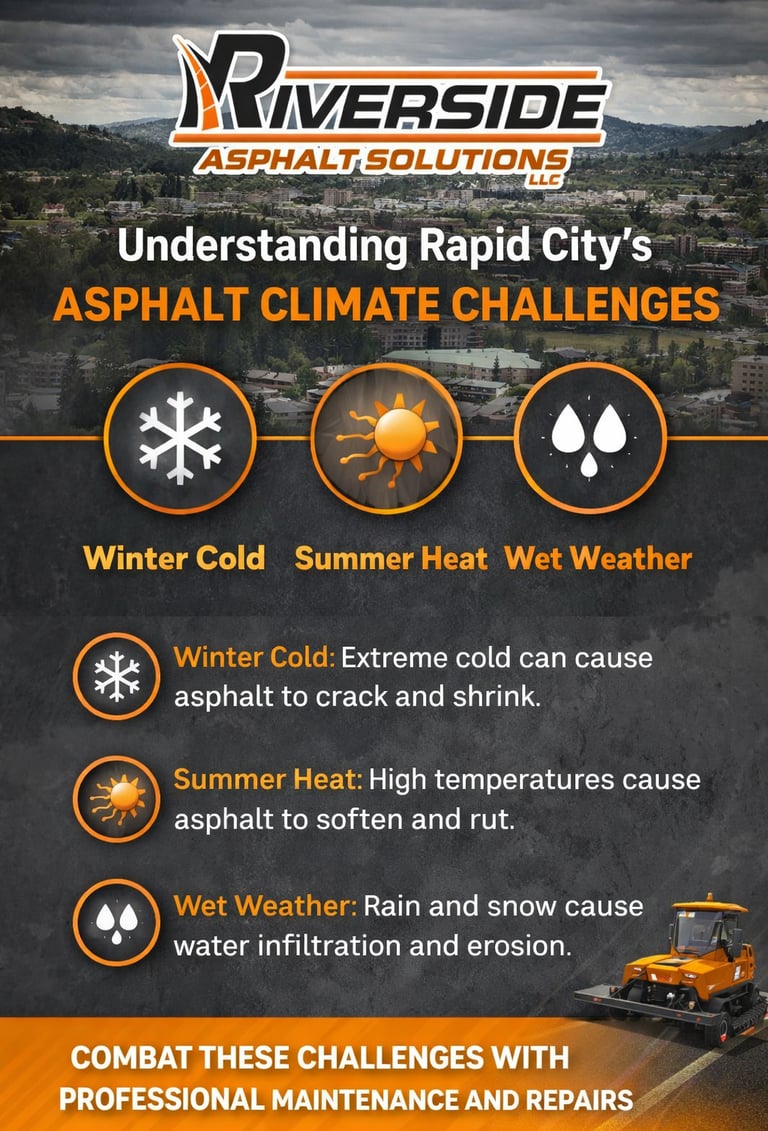 Rapid City experiences one of the most aggressive pavement climates in the Midwest. Local asphalt surfaces must withstand: